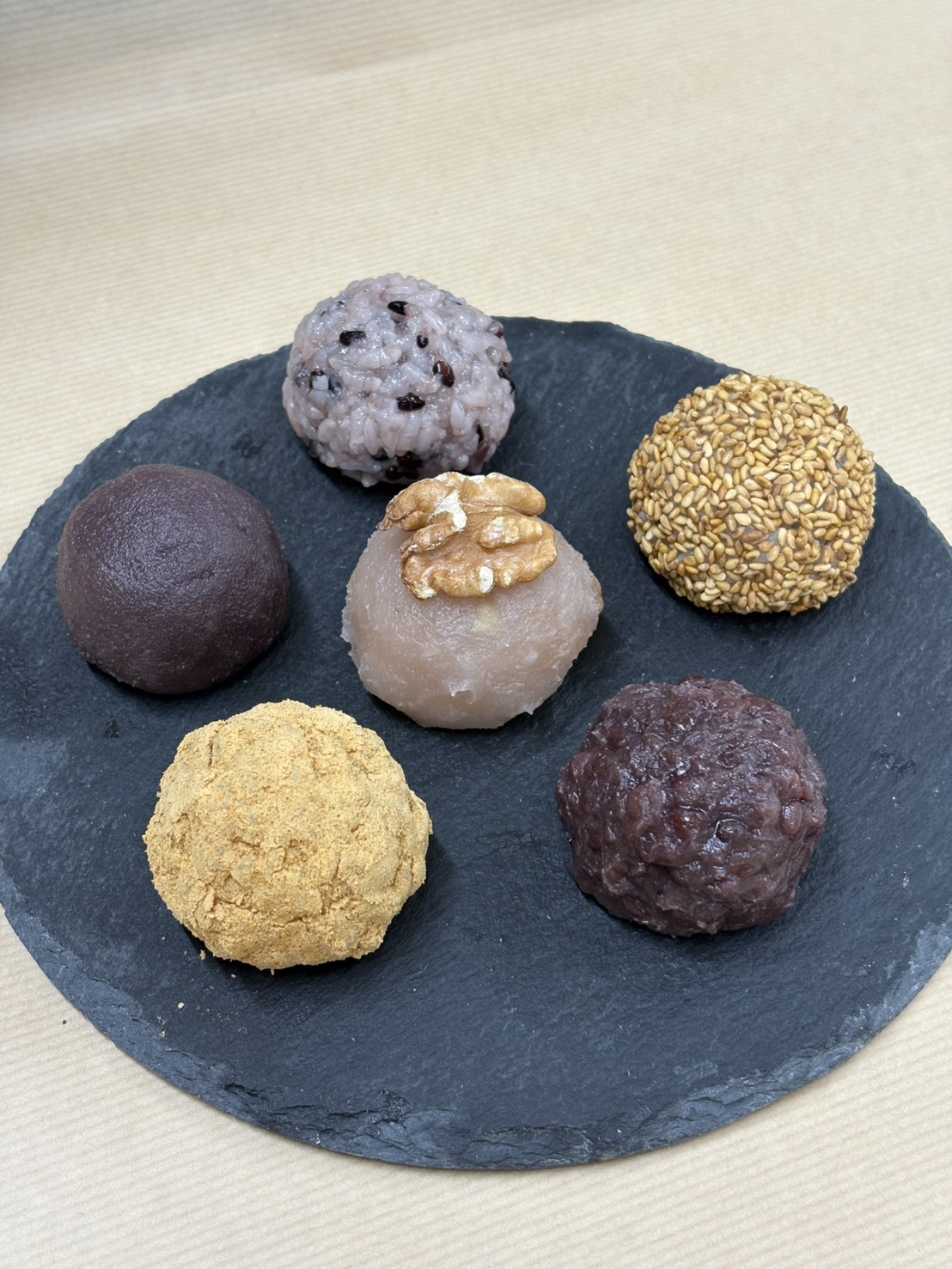 一度に六種を仕立てる大変贅沢なおはぎレッスンです。